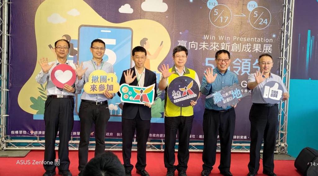 臺南贏地創新育成基地今(17)日在南瀛5G大樓(西拉雅大道),舉辦「贏向未來新創成果展–5G領先成果展示」,臺南市經發局主秘王俊博出席開幕式表示,期透過體驗科技業者兼具生活文化與創新美學的產品展示,讓5G相關產業業者與贏地新創團隊,可以激發創新能量,開創新產品。